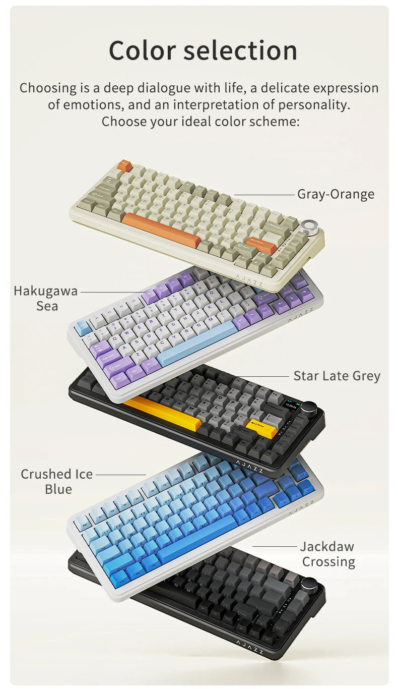 AJAZZ AK820 MAX: Teclado Mecánico Tri-Mode (Pantalla & Knob) Teclado mecánico de alta gama con conectividad tri-mode: inalámbrica 2.4GHz, Bluetooth y USB-C. Pantalla OLED integrada y perilla de control táctil para ajustar volumen y configuración sin interrupciones. Switches mecánicos de calidad superior garantizan respuesta táctil precisa y durabilidad extrema. Diseño compacto con iluminación RGB personalizable, batería de larga duración y compatibilidad universal con PC, Mac y dispositivos móviles. Ideal para gamers y profesionales que exigen rendimiento y versatilidad en un solo dispositivo.