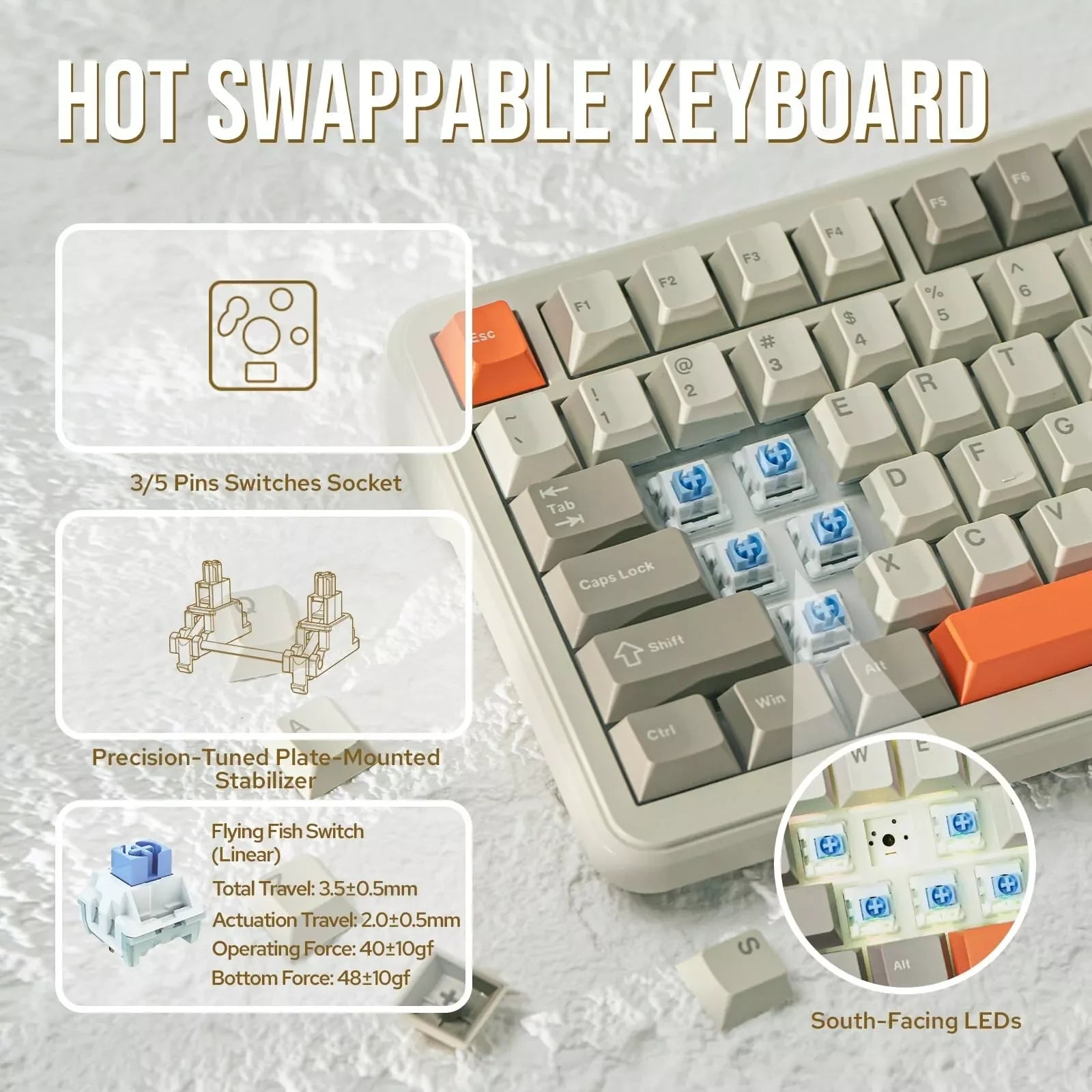Personalización Hot-Swap: ¿Quieres cambiar el sonido o la sensación? Su PCB de Hot-Swap total te permite cambiar los switches en segundos (3 o 5 pines) sin necesidad de soldar.