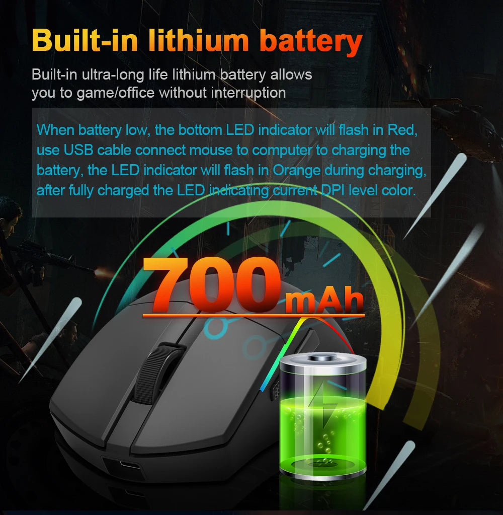 Autonomía de 200 Horas: Olvida la ansiedad por la batería. Su chip de bajo consumo te permite jugar durante semanas con una sola carga.