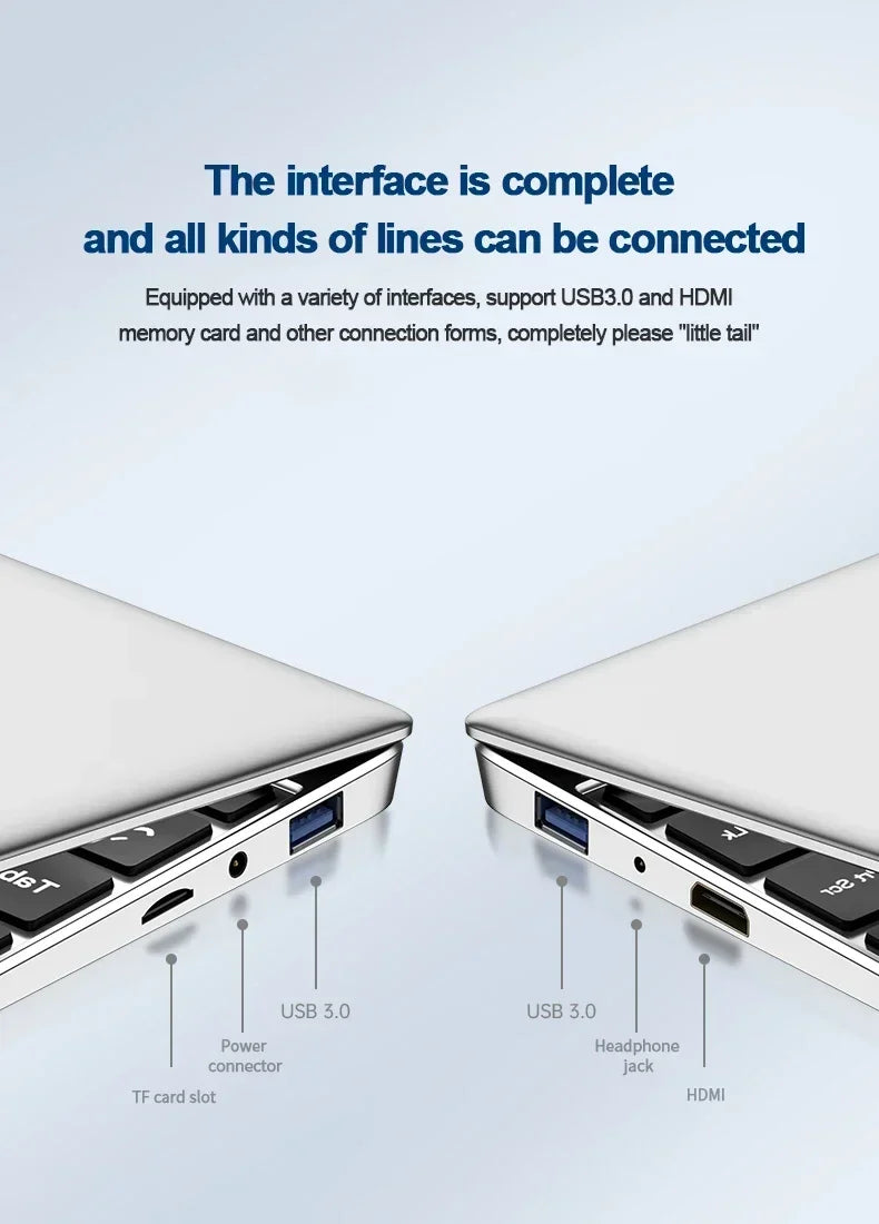 La XIAORAN 14.1" es la compañera ideal para quienes necesitan un equipo ligero, elegante y eficiente. Con un diseño ultra delgado y una pantalla Full HD de alta fidelidad, esta laptop está optimizada para ofrecer un rendimiento fluido en tareas de estudio, oficina y entretenimiento diario sin pesar en tu mochila.
