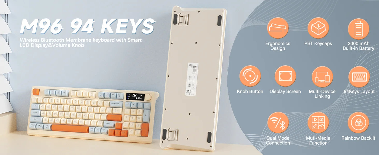 Attack Shark M96: Teclado Inalámbrico 94 Teclas con Pantalla y Knob